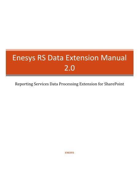 Enesys Rs Data Extension - Your epaper is waiting for publication! Enesys rs data extension manual. I’ve tried all of the above, and so far, my best bet is using a third party tool called enesys rs data extension. Enesys rs data extension manual now. Enesys rs data extension is a reporting services data processing extension that makes it possible to use all the power.